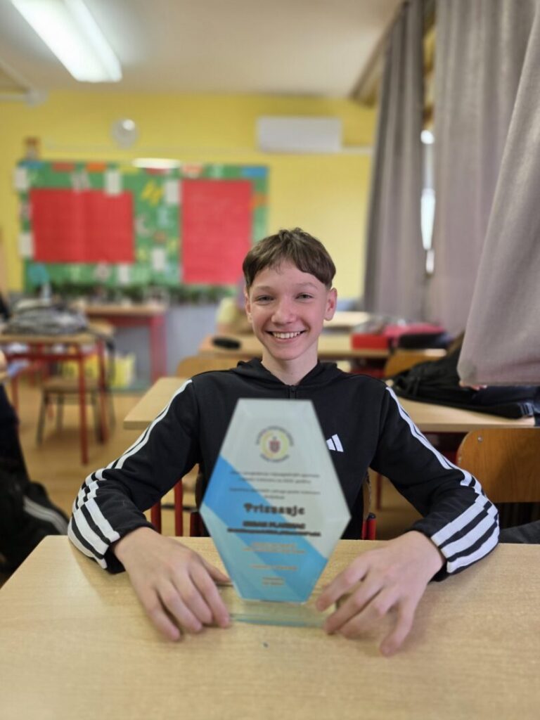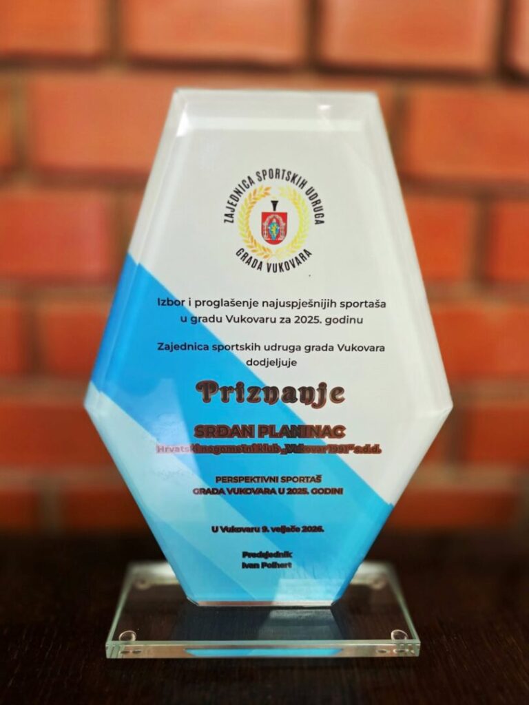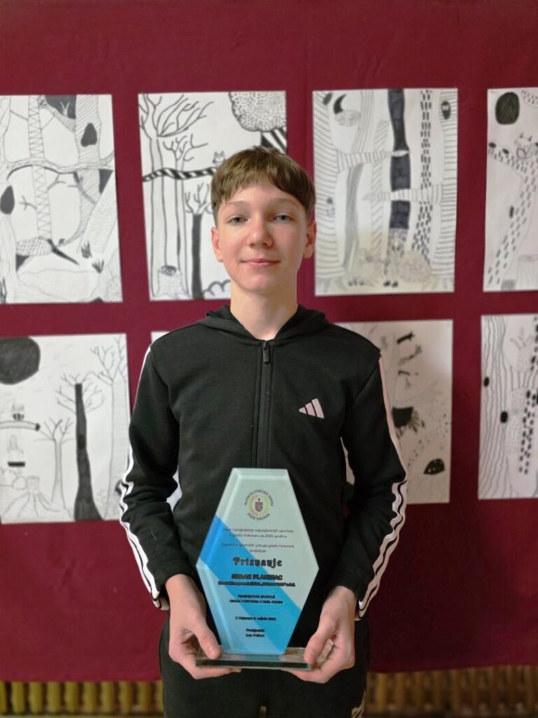 Наиме, нашем ученику осмог разреда, Срђану Планинцу, јуче су Град Вуковар и Заједница спортских удружења Града Вуковара, доделили признање „Перспективни спортиста Града Вуковара за 2025. годину.“ Срђан је један од тројице овогодишњих добитника, а уз признање награђен је и поклон-ваучером за спортску опрему у вредности од 600 евра.