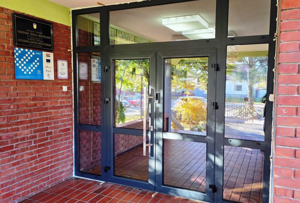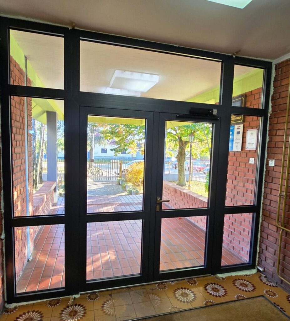 Od danas se možemo pohvaliti novim ulaznim vratima u našu školu. Na taj način smo dodatno podignuli sigurnost naših učenika i djelatnika na višu razinu, a i sam estetski učinak je vrlo dojmljiv.